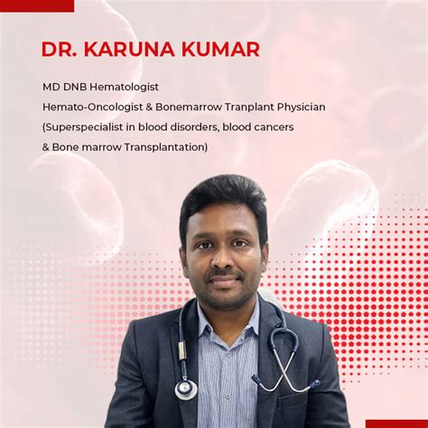 Dr. Karuna Kumar is a highly respected hematologist known for his expertise in diagnosing and treating blood disorders. His clinic provides comprehensive care for patients with a wide range of hematological conditions. The clinic is equipped with state-of-the-art technology to ensure accurate diagnoses and effective treatment plans.